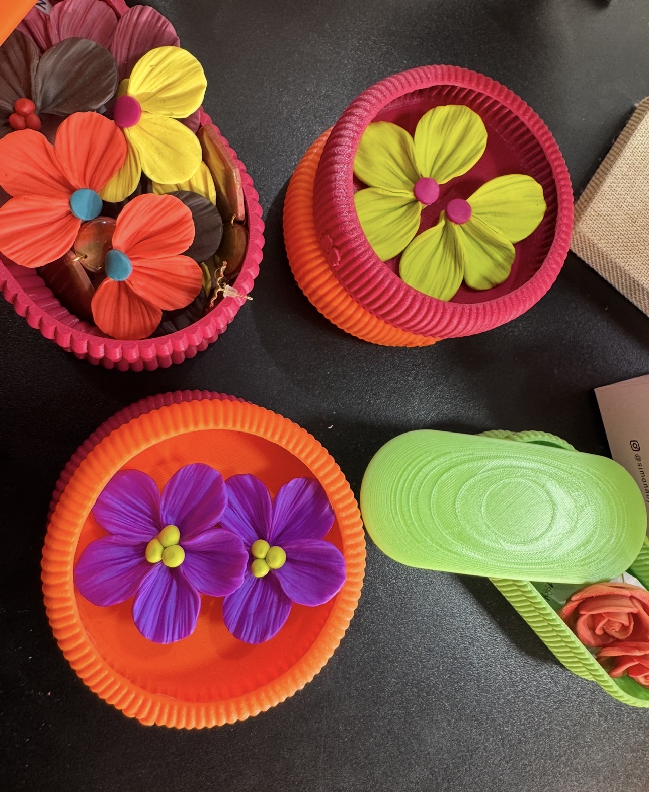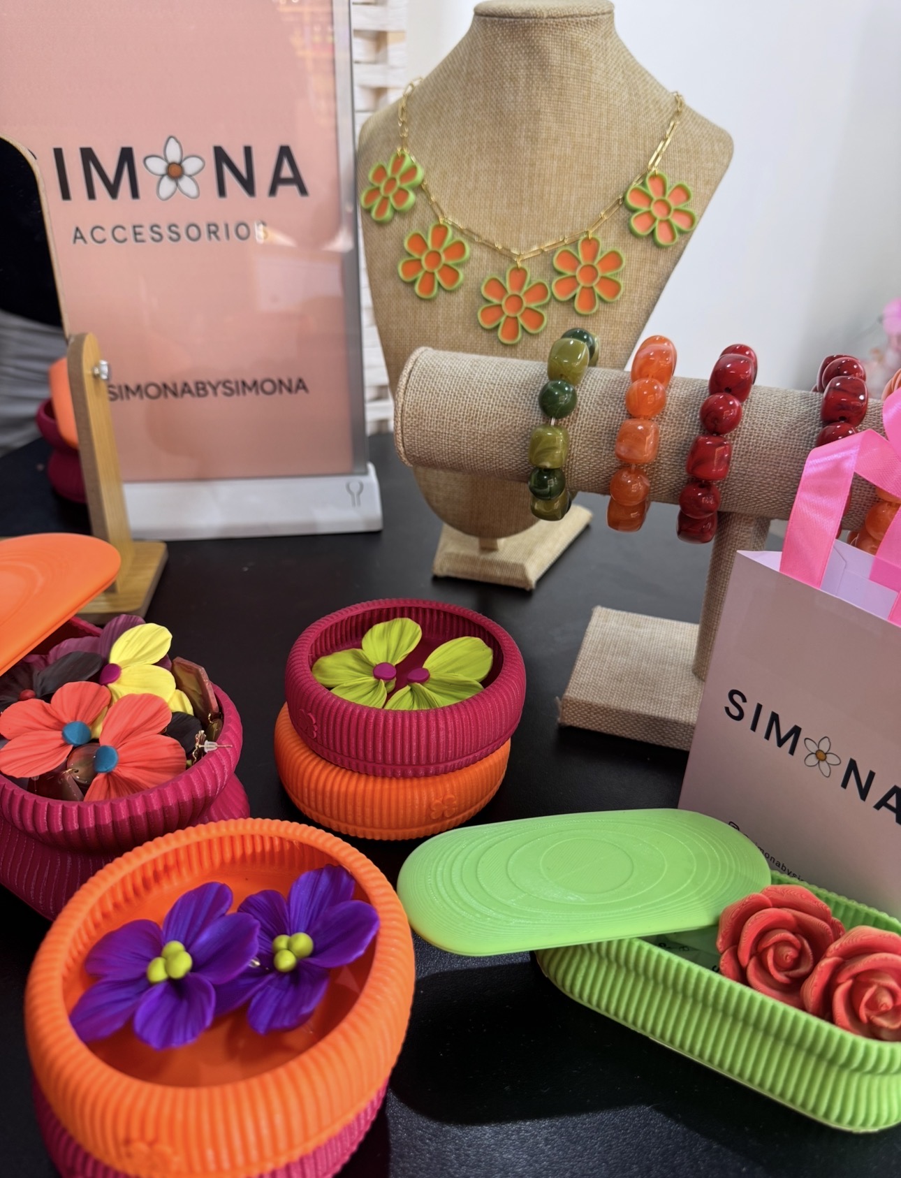Llevamos tus accesorios a otro nivel con materiales únicos: Aros y collares en arcilla polimérica, Carteras de vanguardia impresas en filamento 3D y Elegancia en cuero sintético.